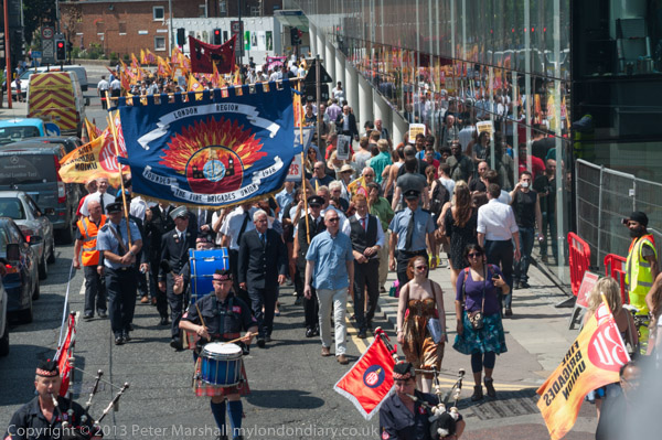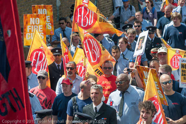 The march went by a roiundabout route to the Fire Brigade HQ where there was to be a meeting over the cuts
