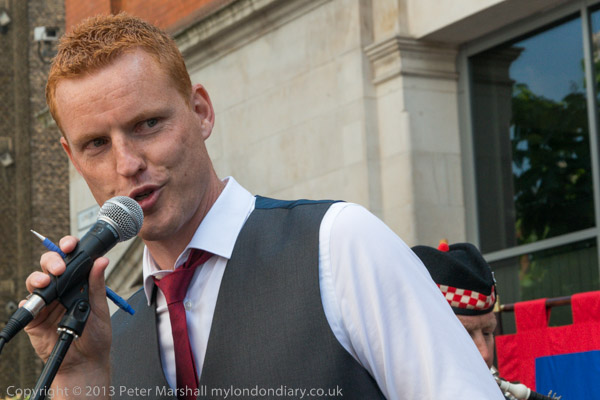 The rally was outside the building were the meeting was to take place and it was chaired by