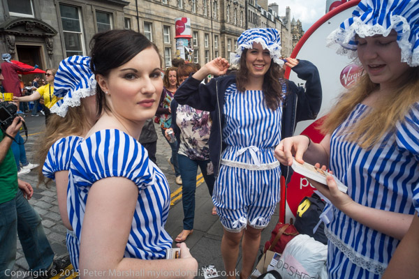 We stayed in a flat with various friends for a week at the Festival. Although I took very few photographs of the various talks, plays and performances we saw, we spent some time looking at the city as well as photographing the festival groups touting for business on the High St and a few other things.