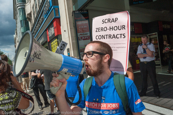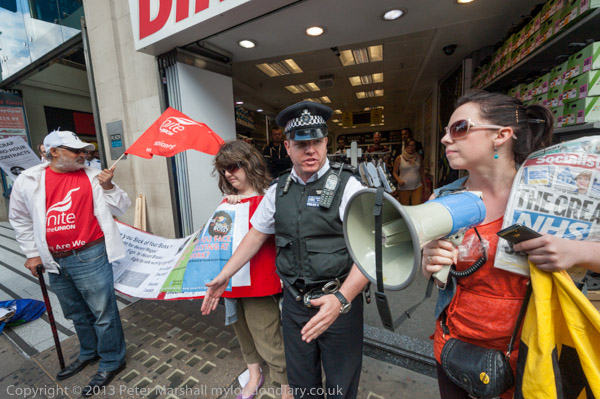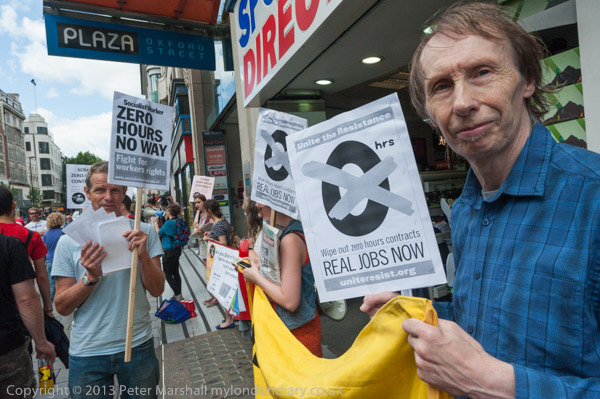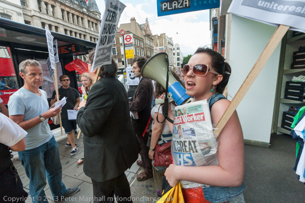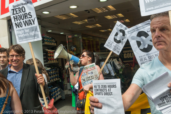 Protesters lined the pavement outside Sports Direct in the Plaza shopping centre on Oxford St