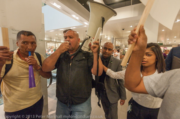 The protest took the John Lewis staff and customers by surprise, and the noise made everyone stop and watch