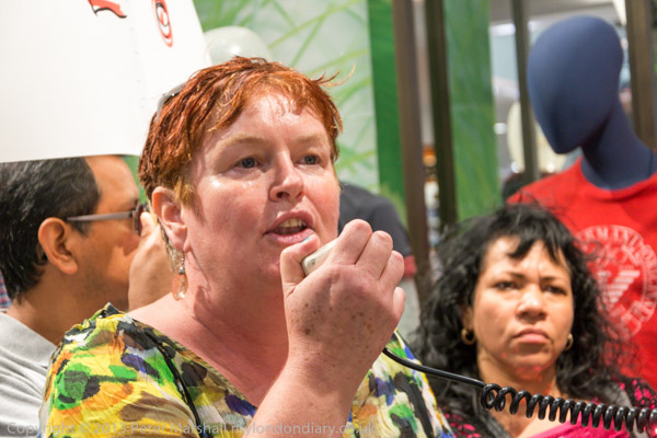 Elaine Heffernan speaks in support of the cleaners and of the victimised partner Raph Ashley