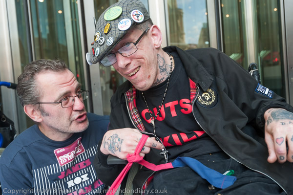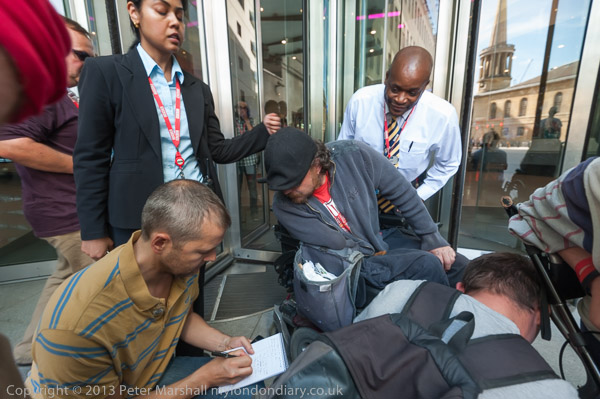 Many of the protesters spoke about why they were there, calling on the BBC to do its job and report properly on the effects of the cuts on the disabled