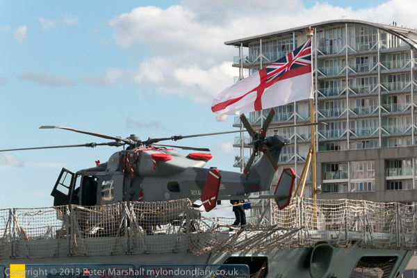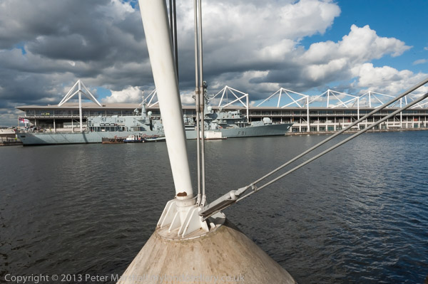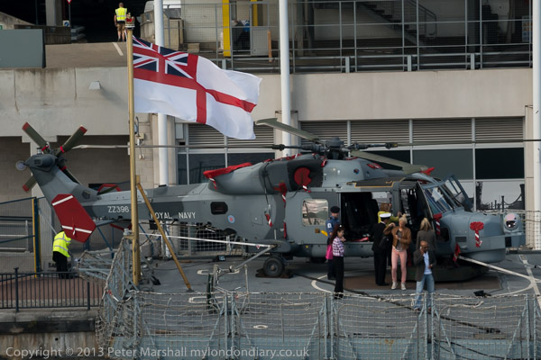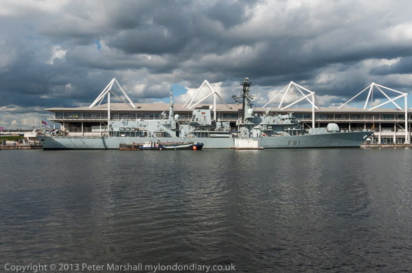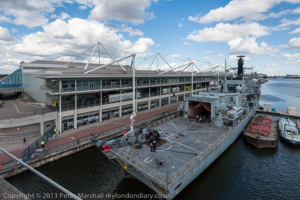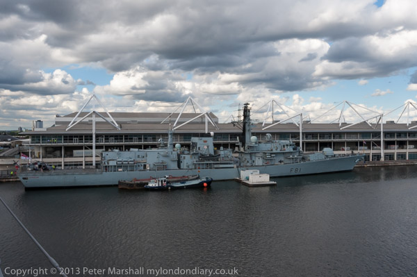 The frigate HMS Sunderland takes up a lot of the ExCel dockside, but later there were several other ships as well