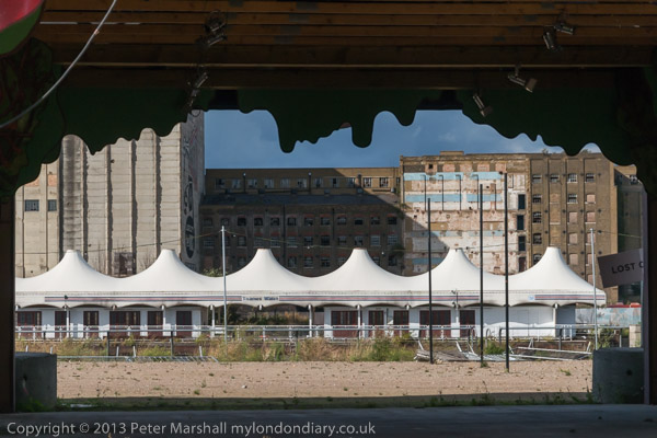 Looking through London Pleasure Gardens entrance to Millennium Mill