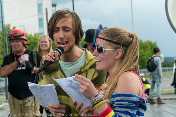 Then we get another really heavy shower and people get up, then some move to the dryish patch under the DLR viaduct