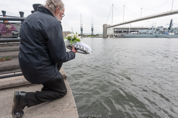 There was a brief ceremony before the wreath was floated on the dock