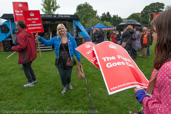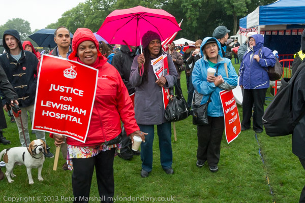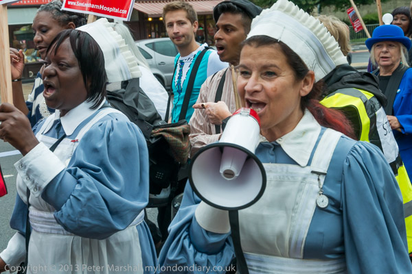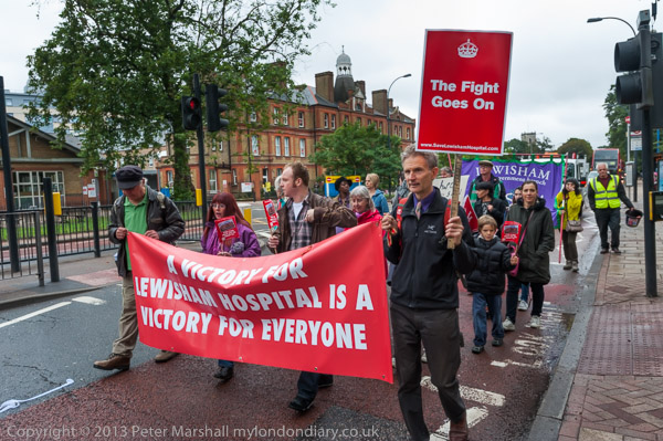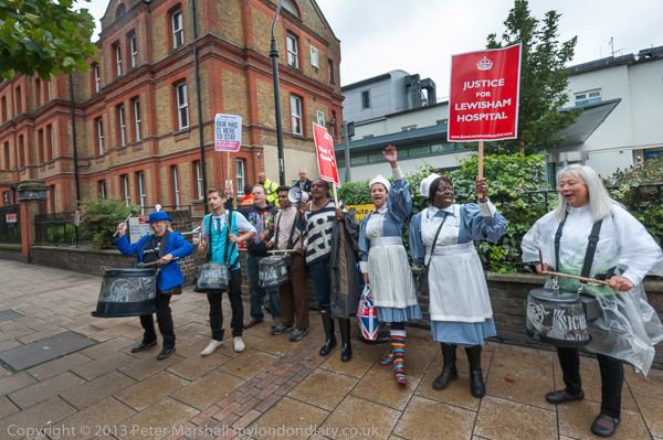 Some of the protesters posed outside the hospital while the Victory Parade went past