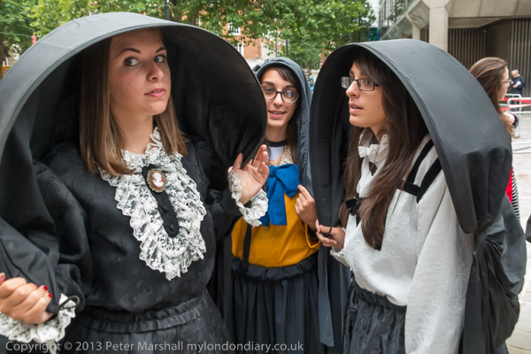 Young women wearring the The ghonnella or faldetta, unique to Malta & Gozo