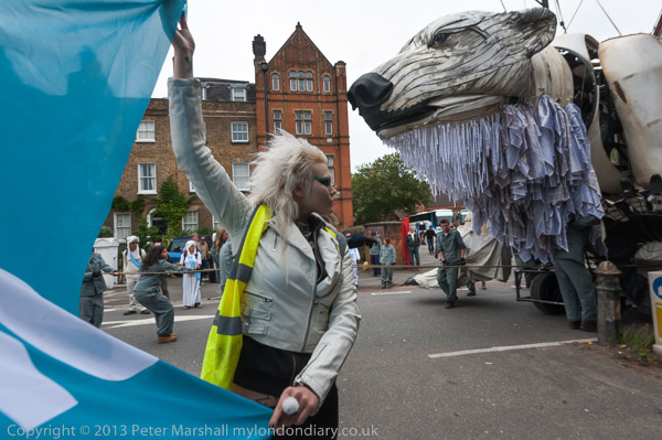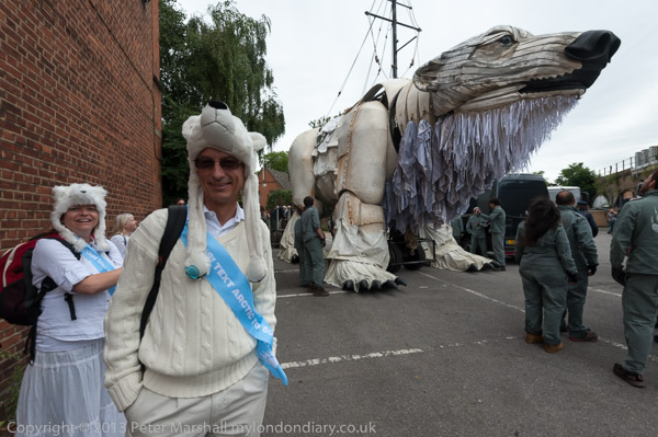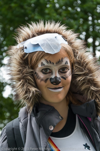 There were a few people with snowflakes on their cheeks and bear masks or face paint, but no giant polar bear
