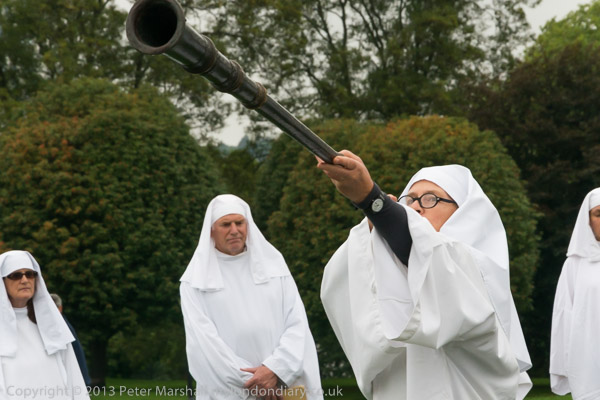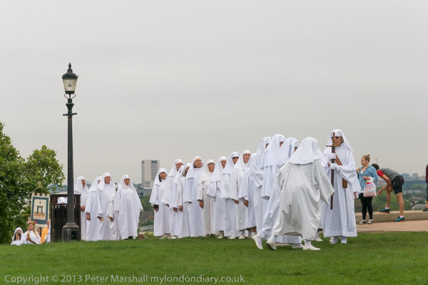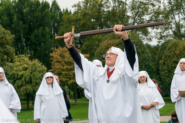 The Druid Order processes up to the top of Primrose Hill, led by a sword bearer