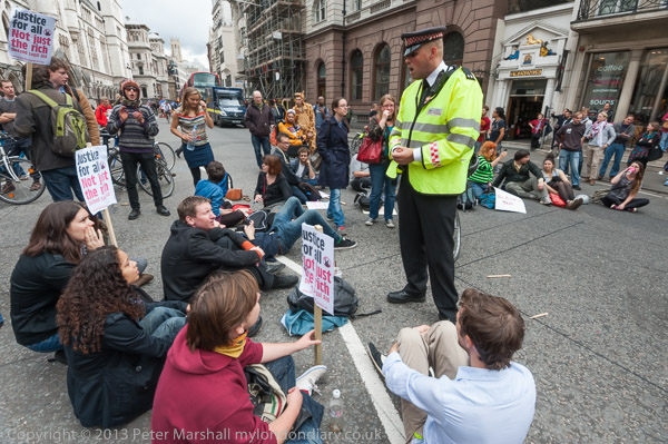 Police came and told the protesters they were blocking the road - and that this was an offence