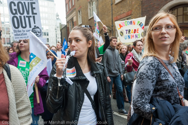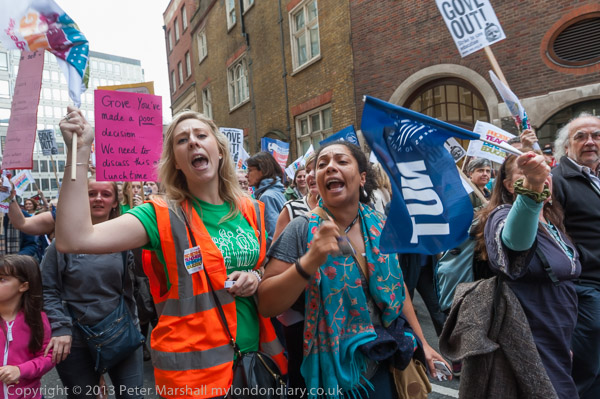 The march went past the Department for Education to a rally a short distance along the road