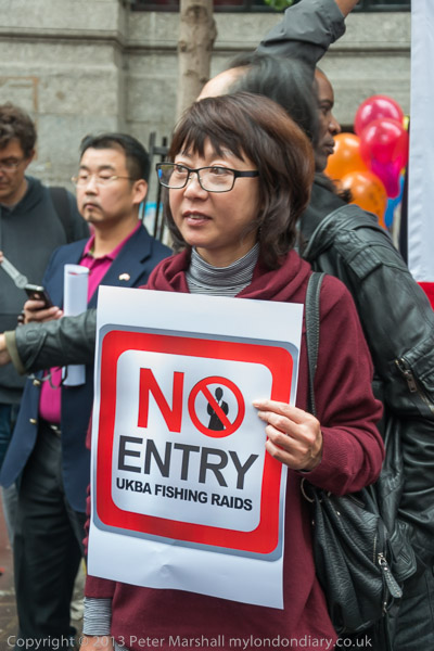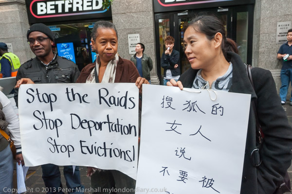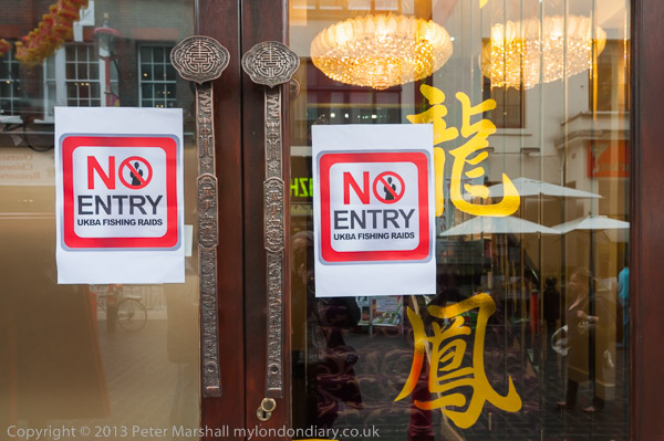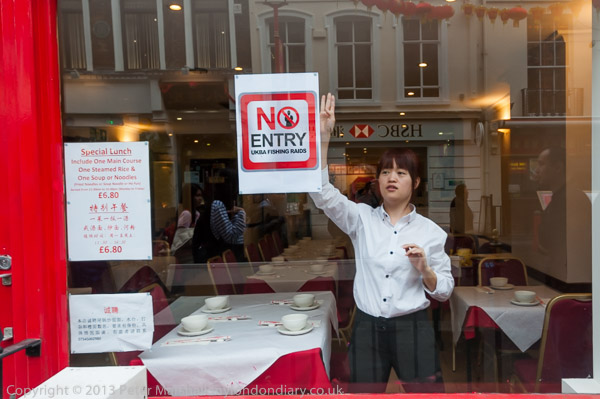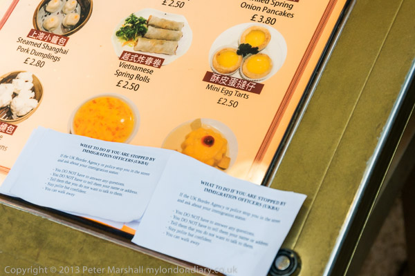 A 'NO ENTRY UKBA fishing raids' notice is put up in a restuarant window