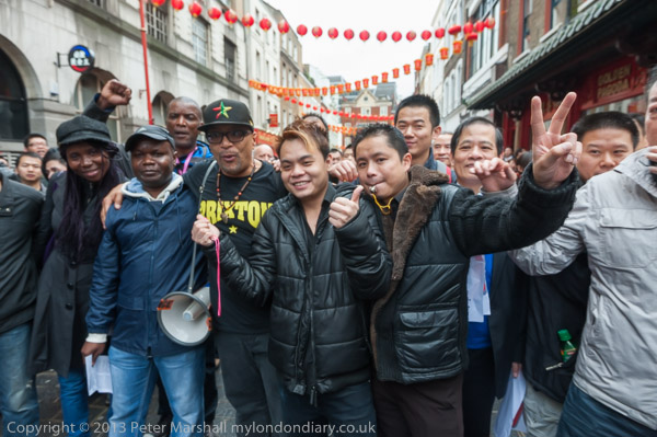 The banner reads 'Say No to UKBA Fishing Raids in Chinatown'