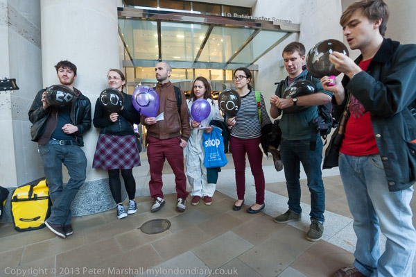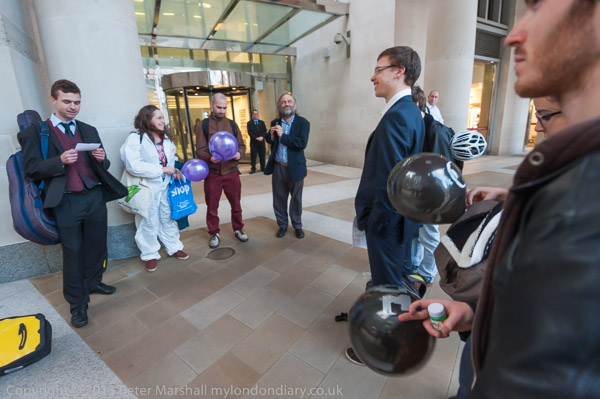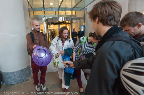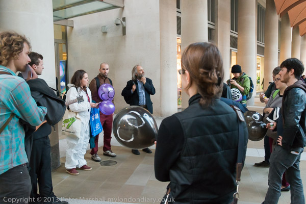 People filled black (and purple) balloons to represnt carbon dioxide. They had intended them all to be black