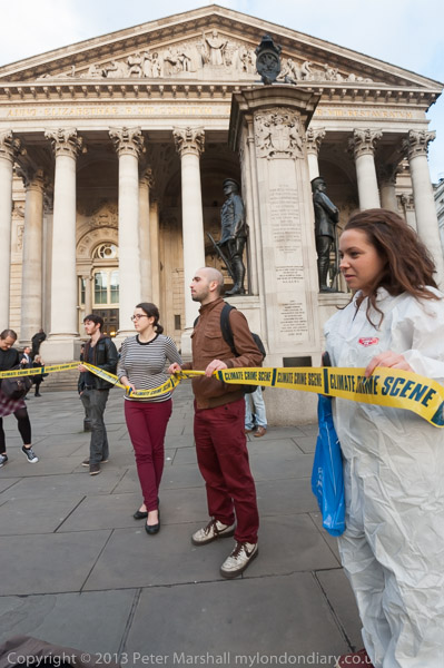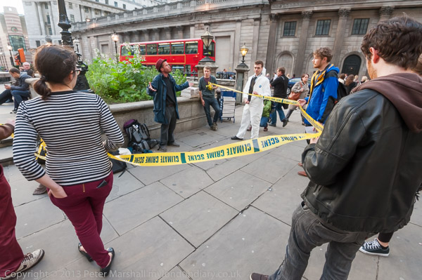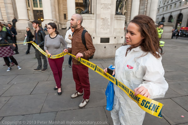 The protesters surrounded the area with hazard tape 'Climate Crime Scene'