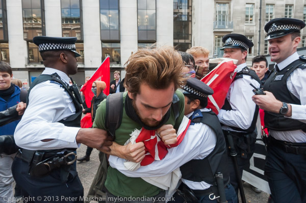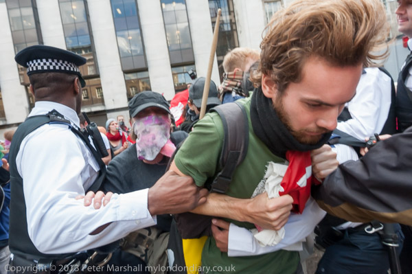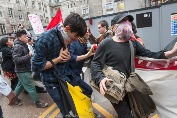 The police attempted to stop some of the protesters, though other police were shouting 'Let them through'