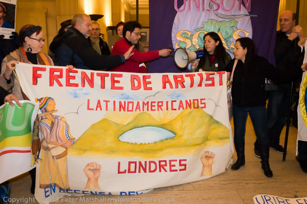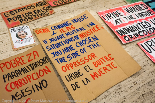 Many groups supported the protest, including Polo Democrático-UK, Colombia Solidarity Campaign,