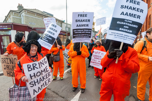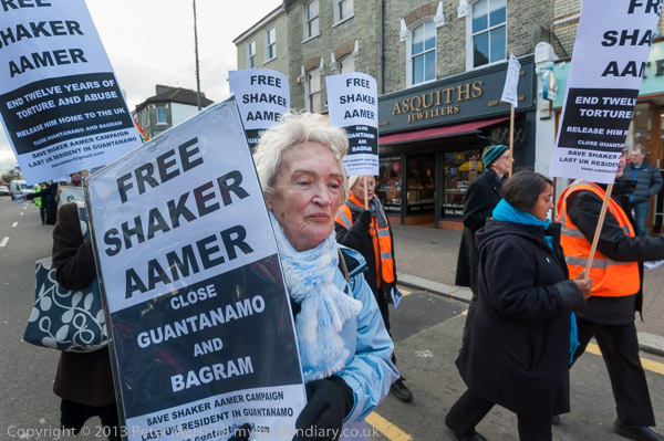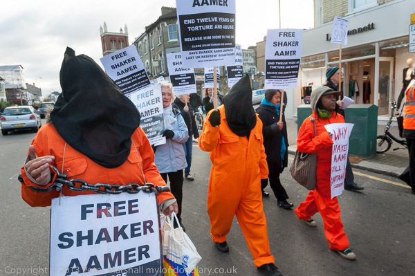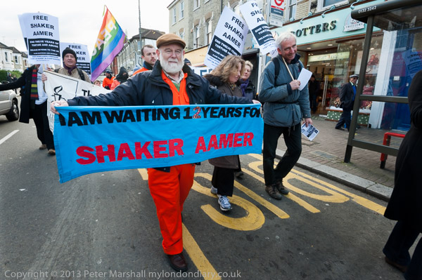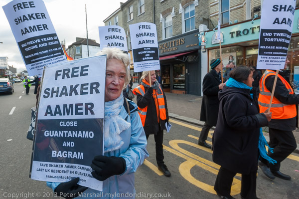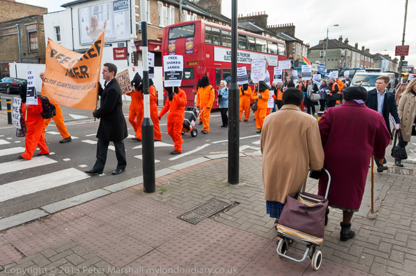 and walks towards Clapham Junction and the rally at Battersea Arts Centre