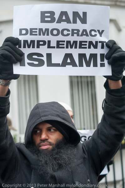 but to - as the poster says 'Ban democracy' and 'Implement Islam!'