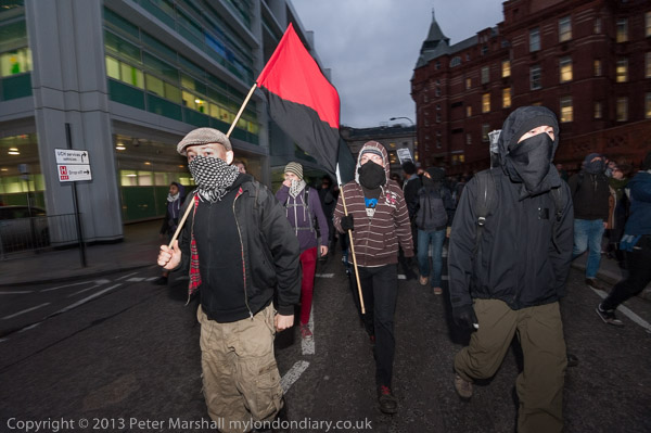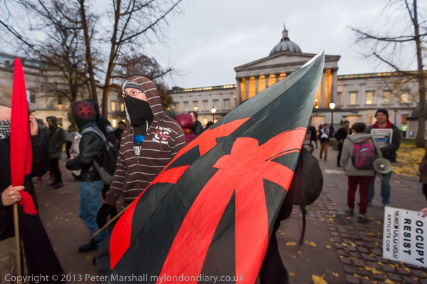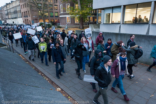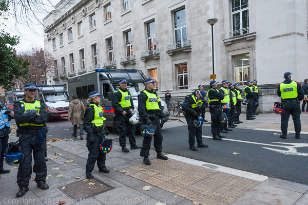 The students marched up Gower St, where a group of around 20 police jogged up and then stopped on the