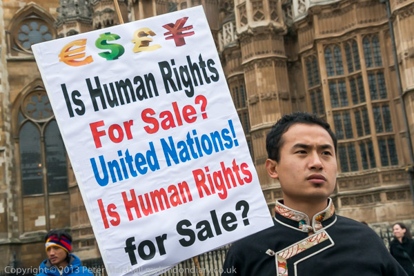 The Tibetans see countries like the UK who are keen to do business with China soft-pedalling over human rights for Tibet