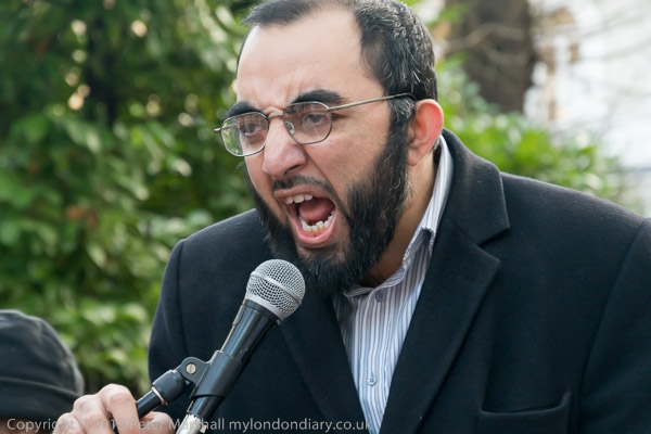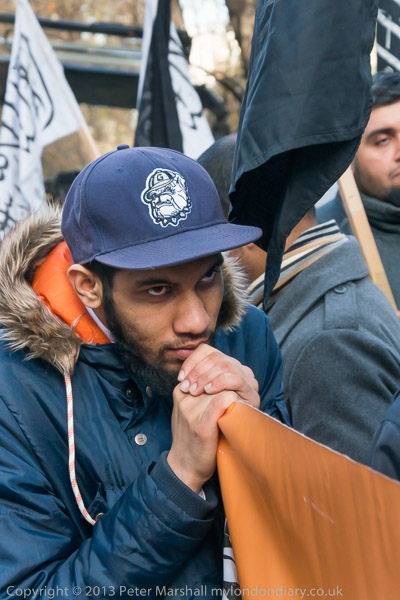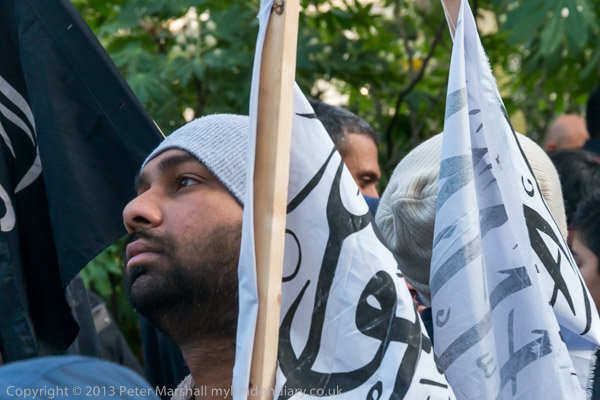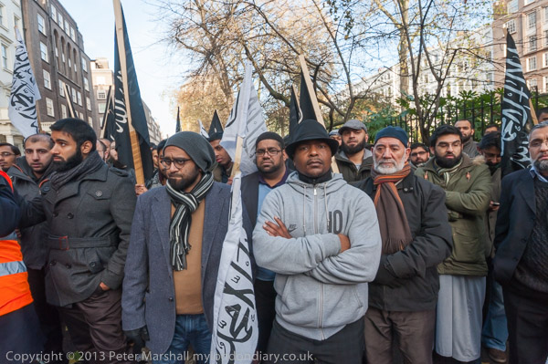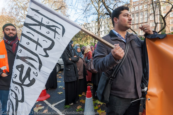 Hizb ut-Tahrir supporters came to the Pakistan High Commission and picked up the black and white flags