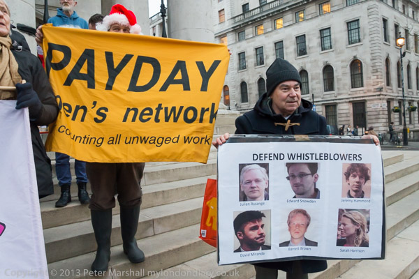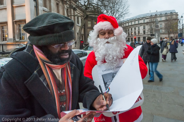 Two passing Santas joined in briefly but had to be told to leave as this was a silent protest - St Martins doesn't allow anything else