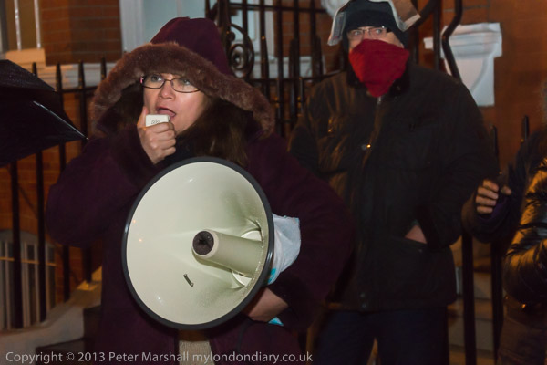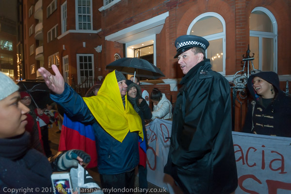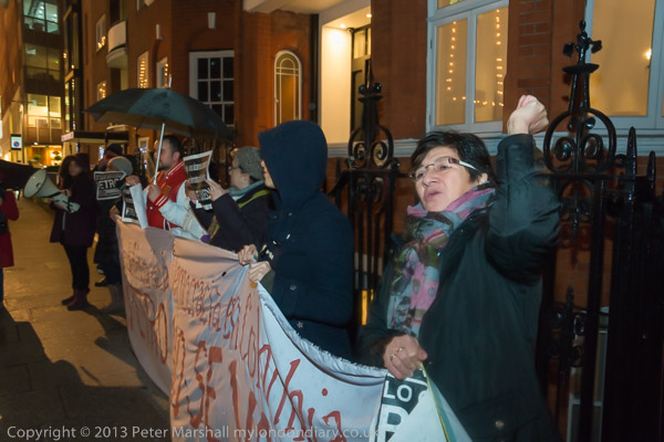 and say they could be a lot quieter if they were actually allowed to protest outside the embassy rather than on the other side of the road