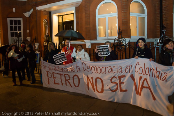 The main banner calling for Petro not to go for the defence of Democracy in Colombia. Petro isn't going.