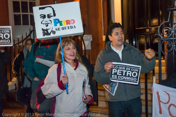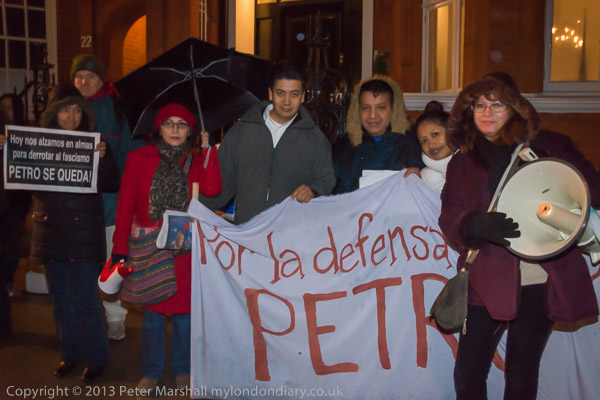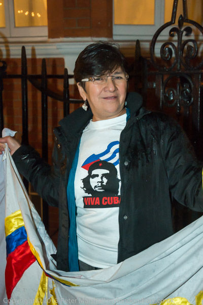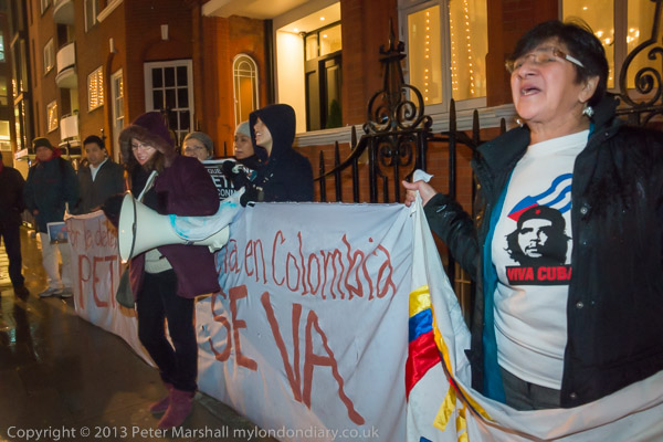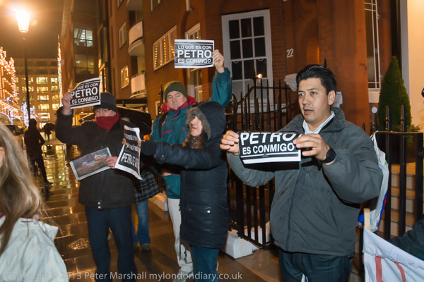 The protest continued and the rain gradually got heavier. The embassy is just a few yards from Harrods