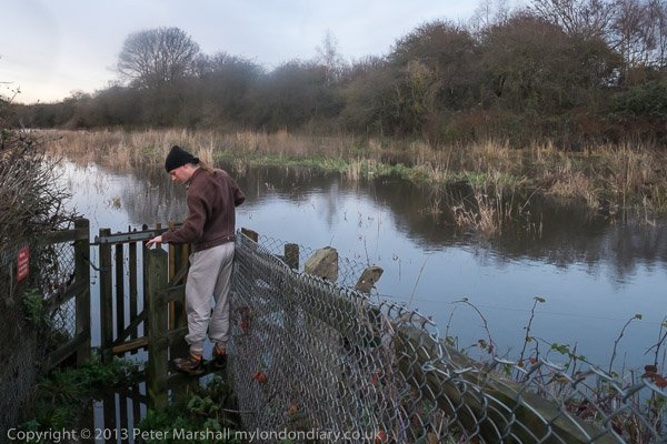 We crossed the Windsor line on the footpath and came to the gate and looked over