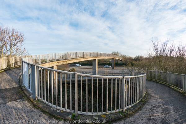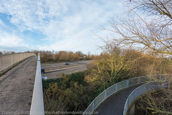 ![]() ![]() ![]() ![]() ![]() On the other side of the motorway is a nature reserve and former gravel workings ![]() Cycling is not permitted on the footbridge ![]() ![]() ![]() A few yards past the motorway the footpath crosses the River Ash which goes under the M3 here ![]() A second bridge across the Ash to the nature reserve ![]() ![]() |