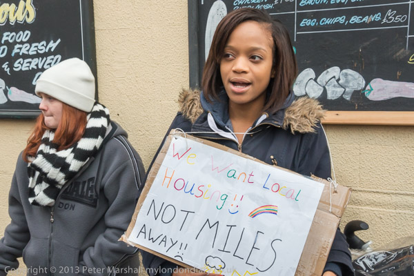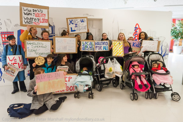 Focus E5 Mothers Party Against EvictionEast Thames Housing Assn, Stratford, London. Fri 17 Jan 2014 |