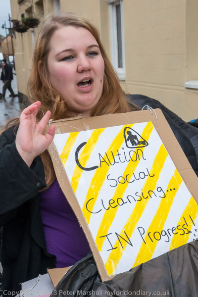 ![]() The mothers and their supporters met on a street corner close to East Thames Housing ![]() They want to be rehoused locally - not in Hastings or Birmingham which the council have suggested to some ![]() 'Caution Social Cleansing.. IN Progress!!' Most new homes in Newham are for the wealthy ![]() East Thames claims to be an 'Affordable homes provider' but says it can't provide them to rehouse these mothers ![]() who are making their way into their Foyer ![]() ![]() along with some supporters ![]() and a local press photographer who wants a group photograph ![]() which I find very boring, but take one anyway, thrihg to find a little more life in it ![]() |