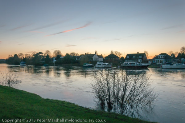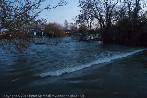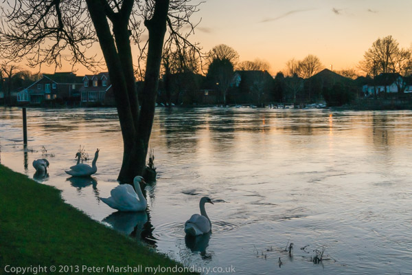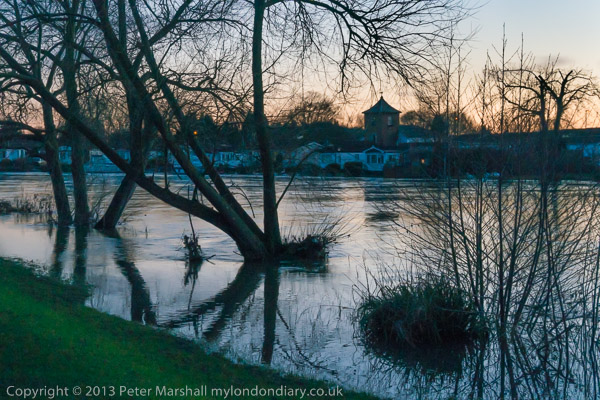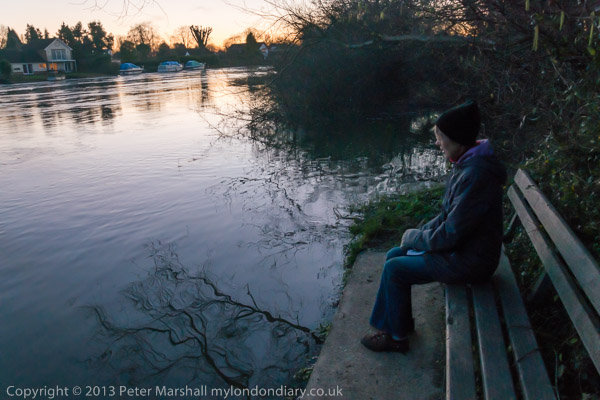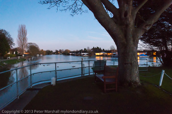 It wasn't really warm enough to sit by the river - but the bank was still covered by water