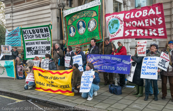 Before the protest finished the protesters lined up outside the Irish embassy for a group picture