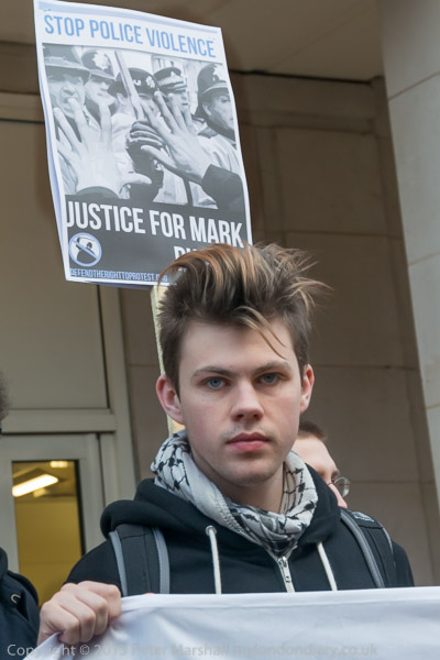 Many of the students had placards calling for Justice for Mark Duggan, and there was a banner