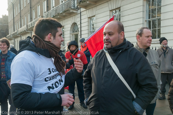 Some of the picket wore '3 Cosas' shirts explaining the campaign