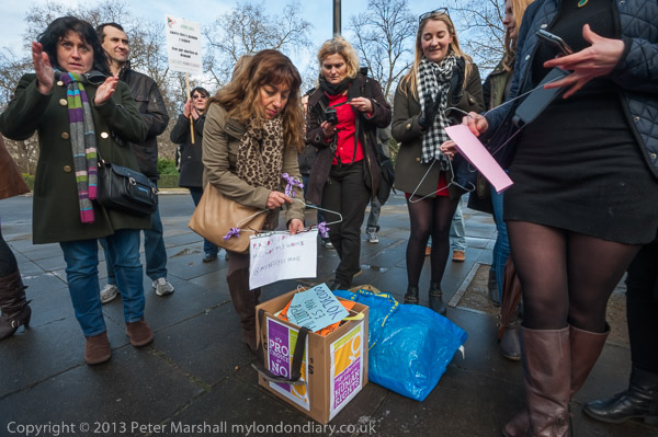 People put their bellyhangers and messages into a box to be taken to the Spanish Embassy