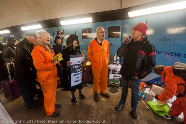 It was pouring with rain so the rally was held in the railway arch