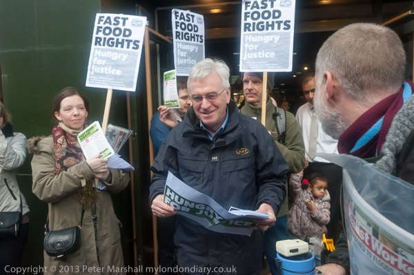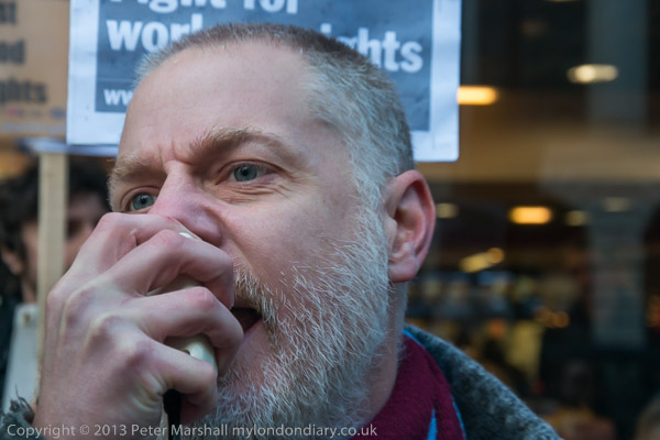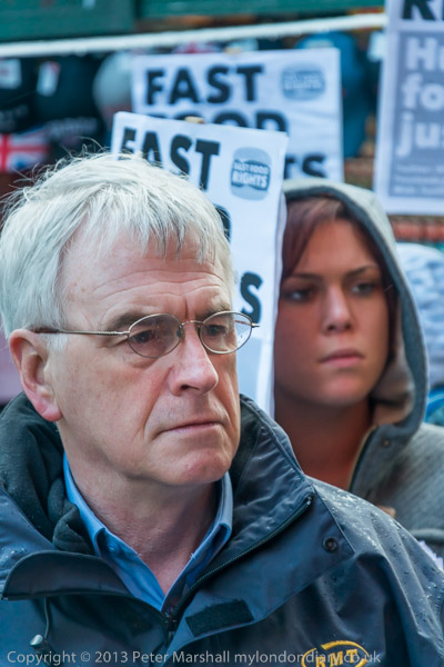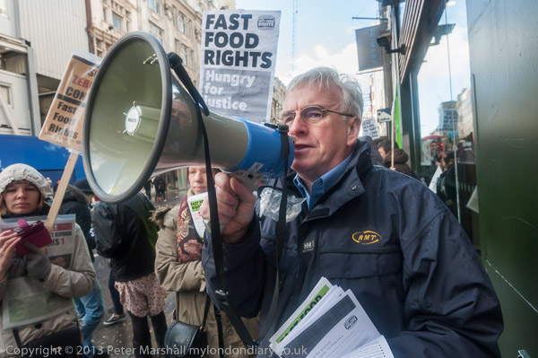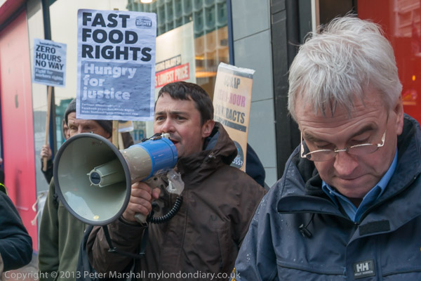 Ian Hodson, national president of BFAWU speaking outside Burger King in Tottenham Court Rd