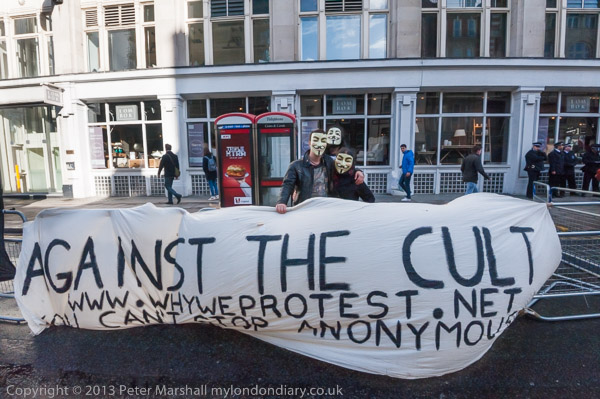 The protest here and in Queen Victoria St in Feb 2008 involved several hundred people, brought together by the Internet