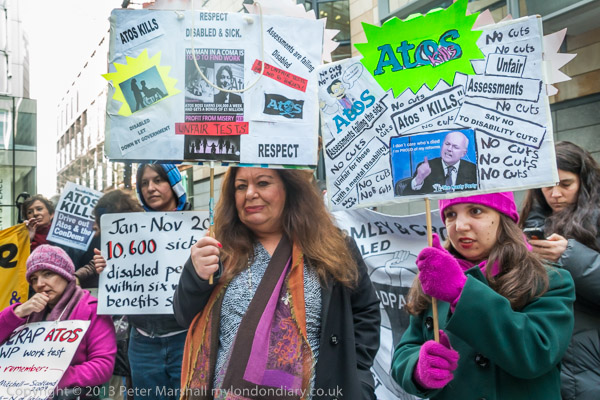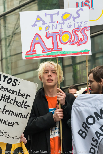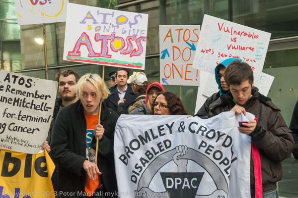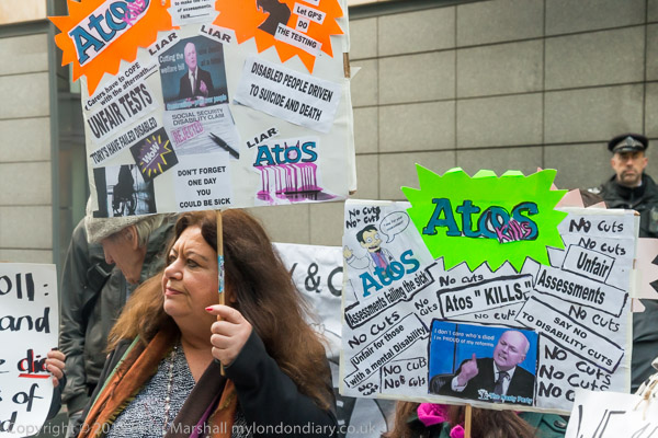 At this point I left the protest outside the Atos offices to cover events elsewhere in London, returning later in the day