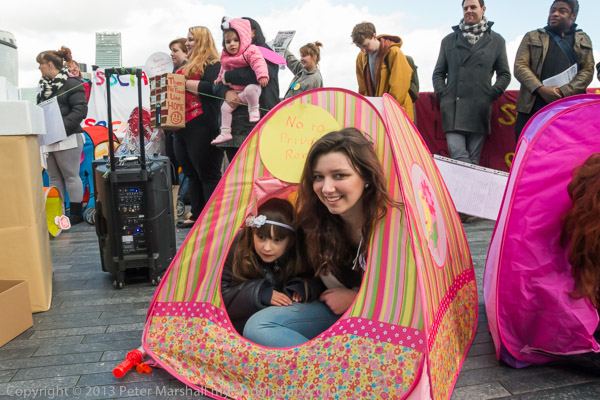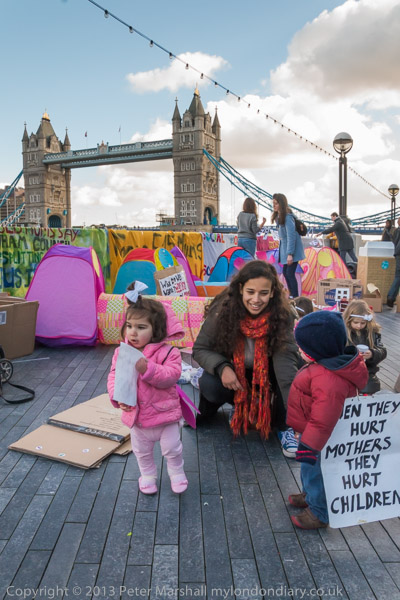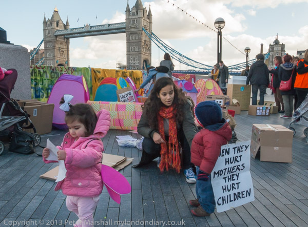 The mothers had come on an open-top bus from Stratford and some of their supporters had also brought their children