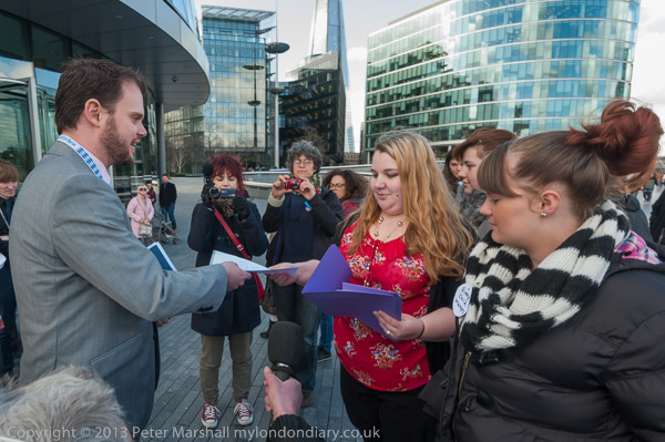 Green Party GLA member Jenny Jones visited the protest as it was starting