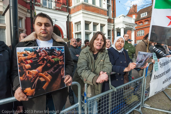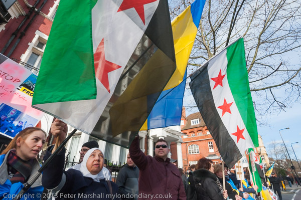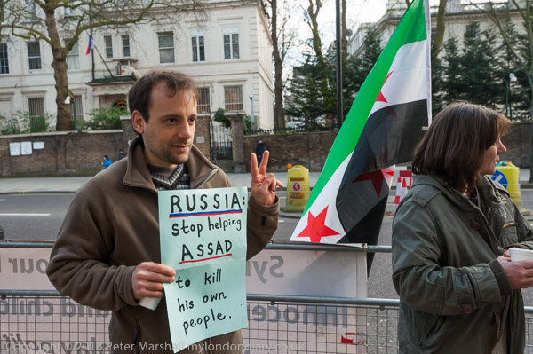 The Syrians for peace hold regular protests opposite the Russian embassy