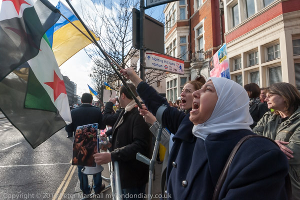 The Ukrainians came and joined in with the Syrians, both protesting together against Putin