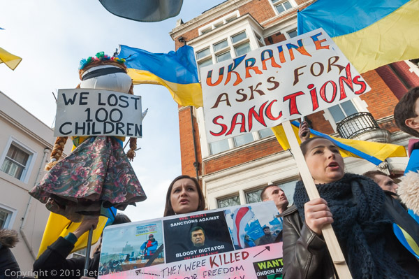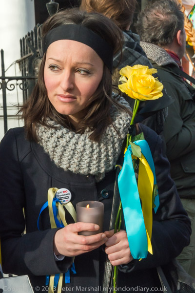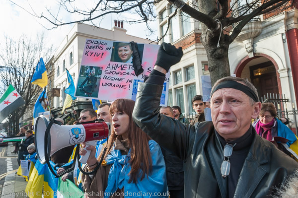 Most of the Ukrainians marched from a nearby cultural centre to the Russian embassy